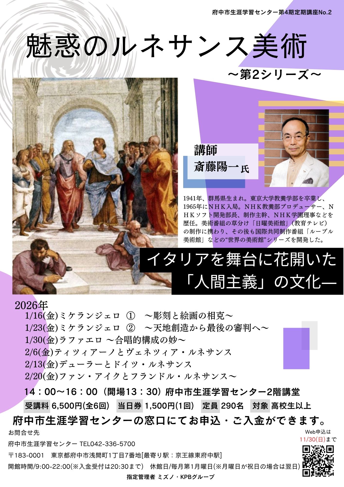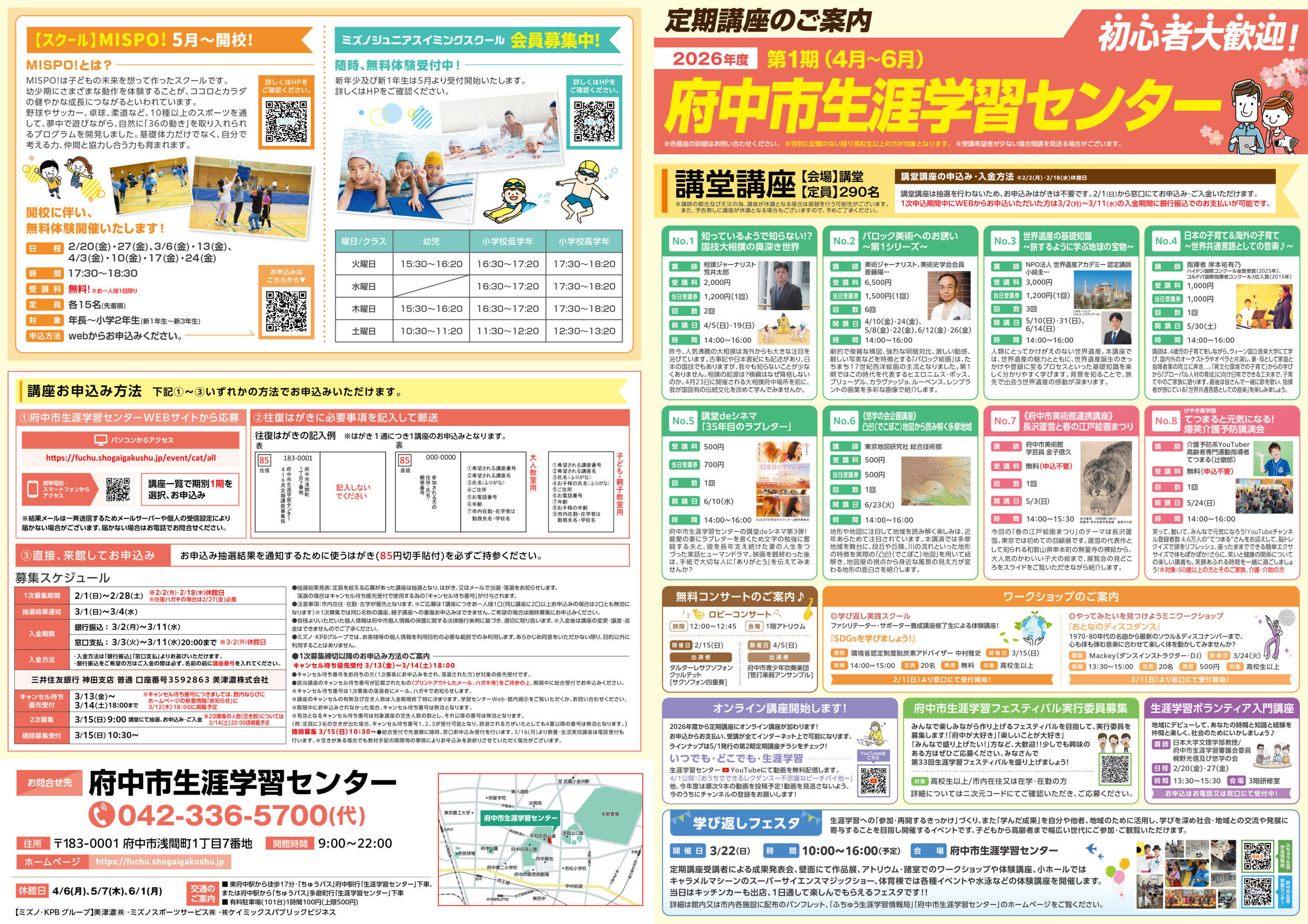 ⭐︎府中市生涯学習センターの定期講座のスケジュールについて⭐︎